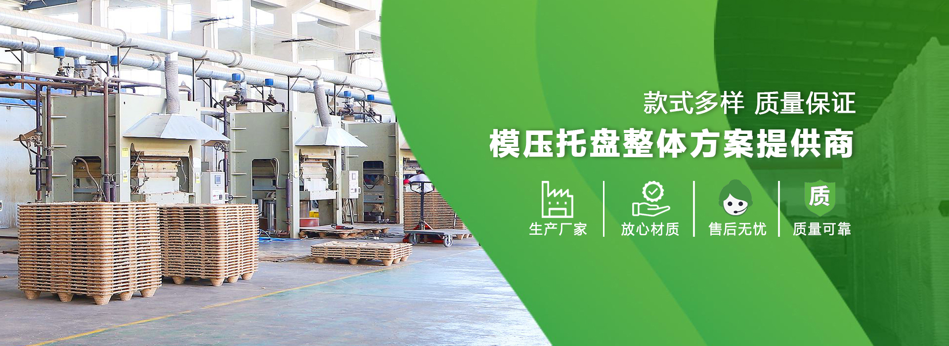 現(xiàn)有廠房占地面積50000平方米,專業(yè)從事模壓技術(shù)應用領(lǐng)域的研究,在模壓托盤研發(fā)設計,公司擁有完善的管理體系以及高素質(zhì)的管理團隊,壓托盤整體方案的優(yōu)質(zhì)提供商。